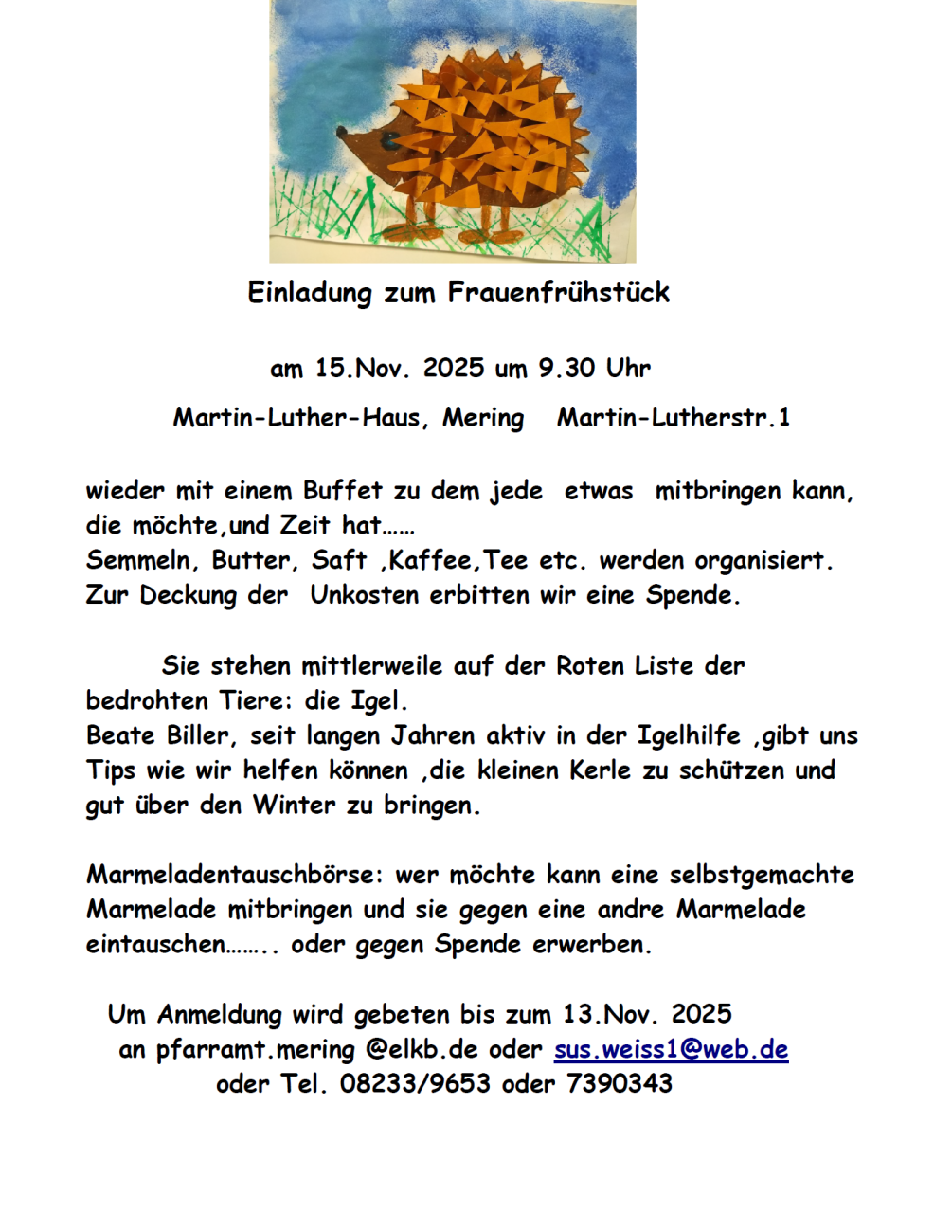 Wenn Sie die Arbeit unserer Gemeinde unterstützen möchten, freuen wir uns über eine Spende auf unser Spendenkonto (Ev.-Luth. Pfarramt Mering, Raiffeisenbank Kissing-Mering eG, IBAN DE83720691550000126225, BIC GENODEF1MRI). Hier gelangen Sie direkt zu unserer Spendenseite.